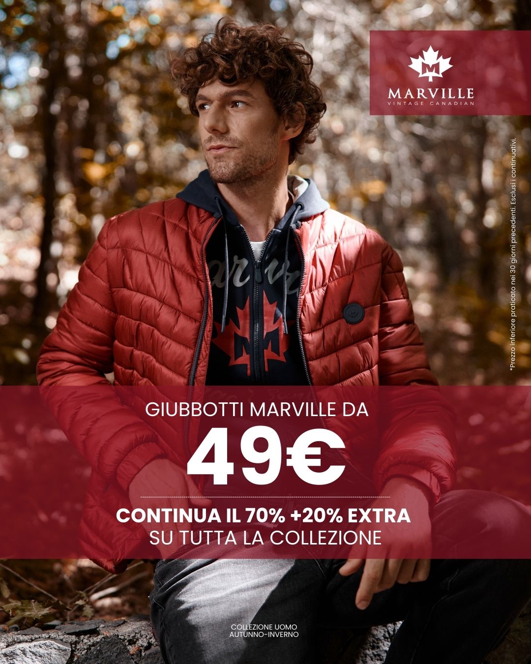 Giubbotti a partire da 49€ e 70% + 20% di sconto sul resto della collezione Fall/Winter. Marville
