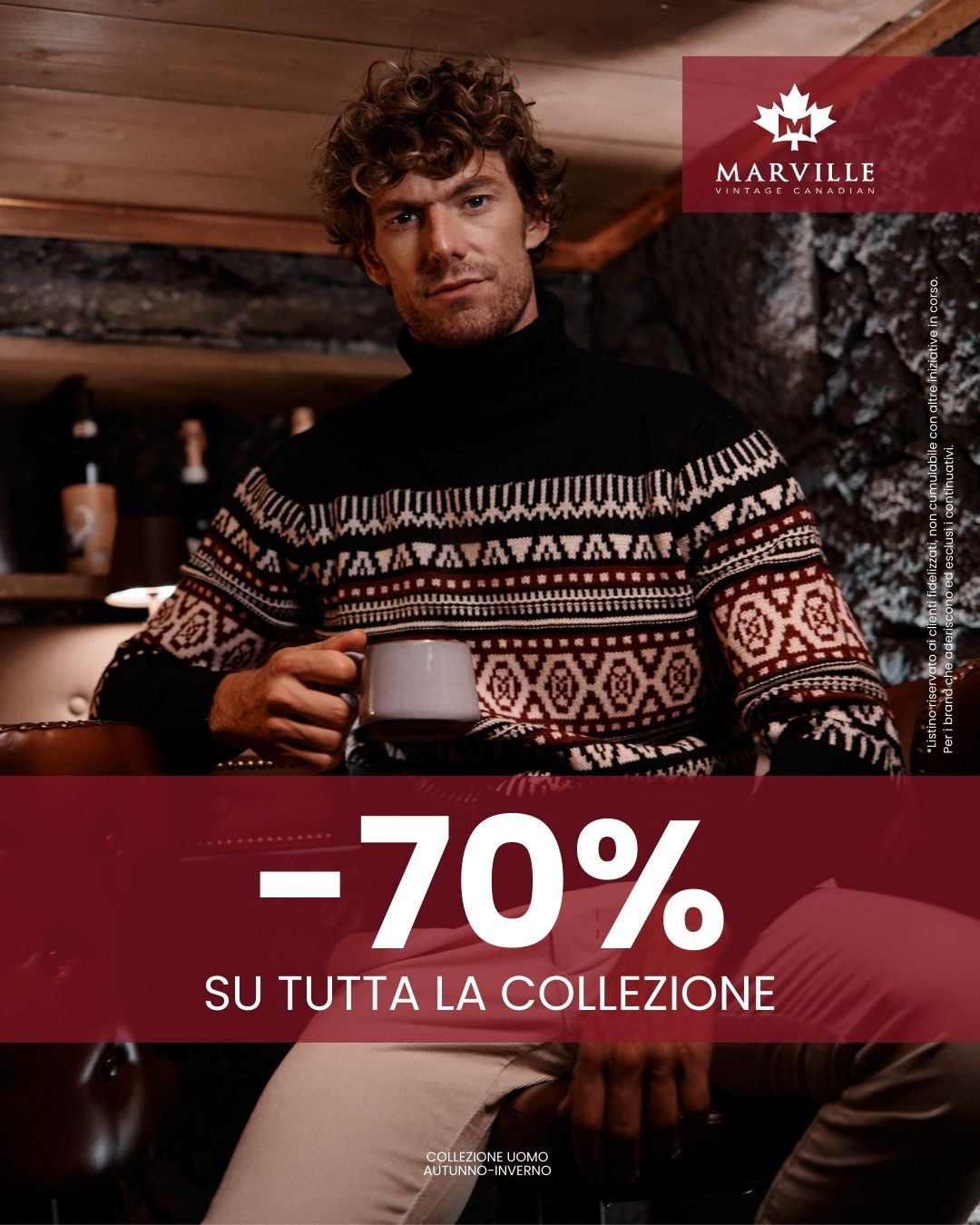 -70% su TUTTA la Collezione F/W! A Natale regala lo stile Marville. Solo per TE. Lunedì 8/12 aperti.